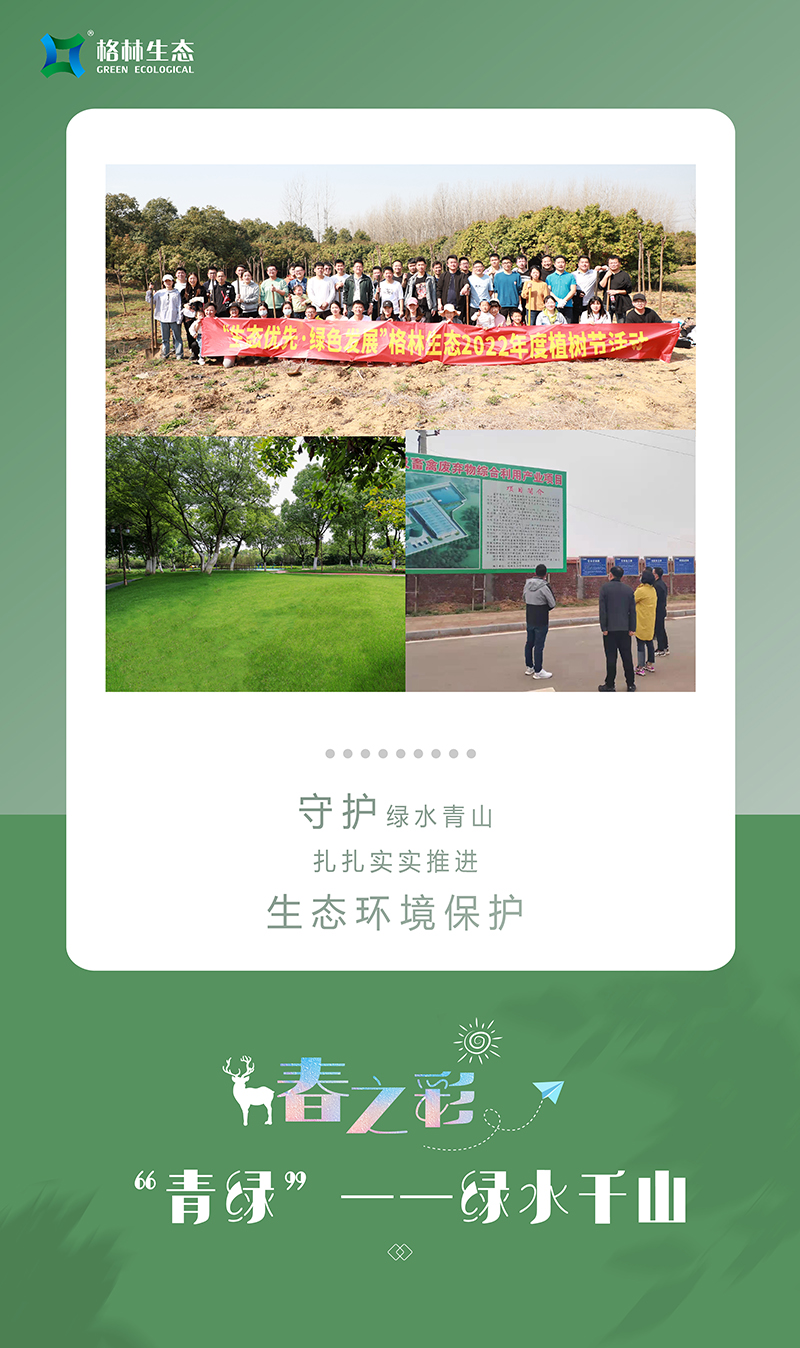 我們牢記“綠水青山就是金山銀山”的生態理念,每年開展植樹活動,今年共植三百余株欒樹和紅葉石楠球,讓綠色在大地蔓延;與此同時,格林生態積極履行社會責任,強化集約節約理念,與合作伙伴協同做好污水處理改善,促進水生態環境持續改善,努力實現經濟發展和生態環保雙贏目標。現如今正是楊柳青青、草長鶯飛之時,傲人的青山綠水正在以秀美優雅的姿態展現出來!