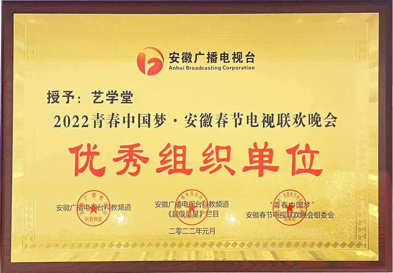 合肥藝學堂喜獲安徽省少兒春晚“優秀組織單位”稱號