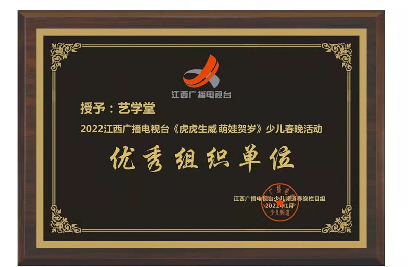 南昌藝學堂喜獲江西省少兒春晚“優秀組織單位”稱號