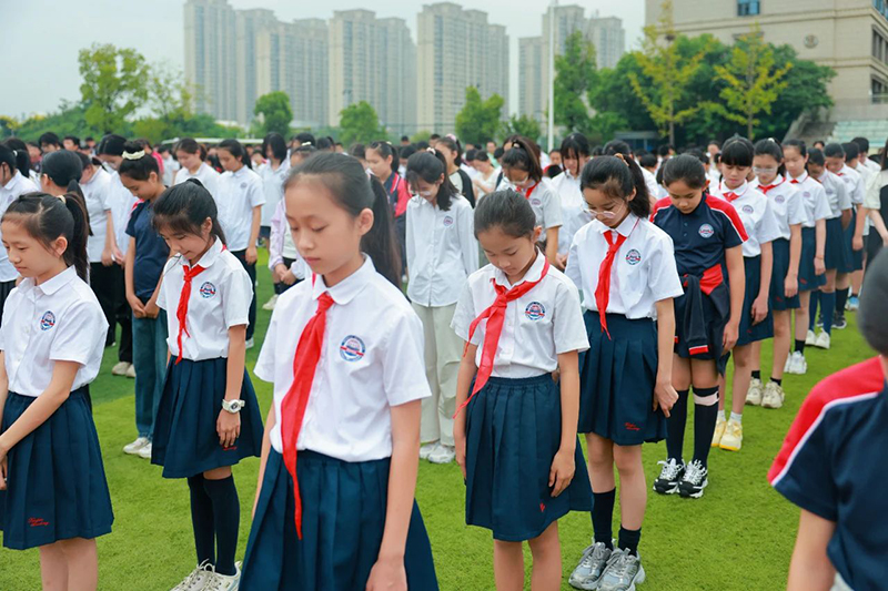 此次演練結合中秋假期結束后的第一個升旗儀式一同舉行,演練結束后,同學們整齊列隊,前往操場舉行升旗儀式。一陣莊重嚴肅的默哀后,總校長秦新春先生進行了國旗下的講話。他帶領大家回顧了那段令國人屈辱的歷史,并告誡同學們要銘記歷史,勿忘國恥。同時要以史為誡,發憤圖強,鑄牢中華民族共同體意識,成為具有愛國主義底色的青少年。
