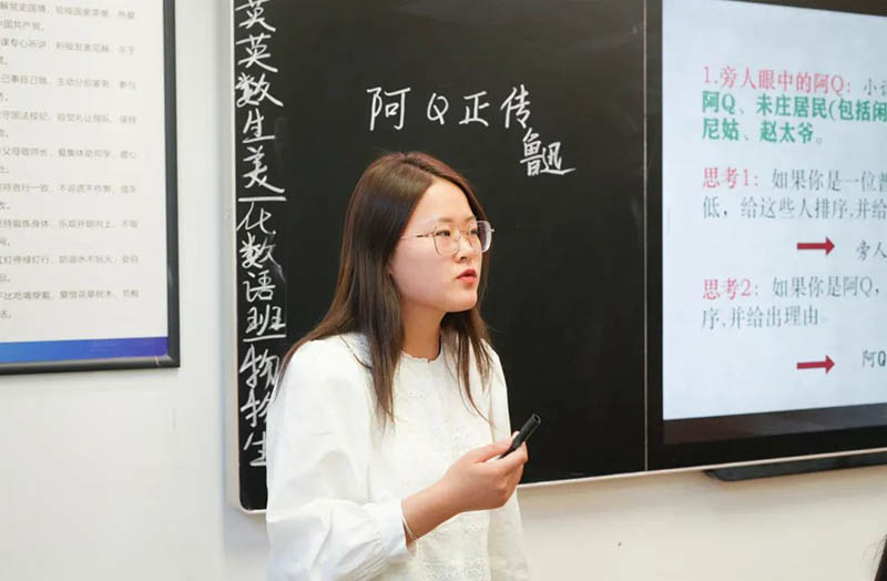陳燕老師:利用“情境教學”,為學生創設具體生動的課堂場景,激起學生們對阿Q人物形象分析的學習興趣,從而引導他們從整體上理解文本,構筑課堂框架。