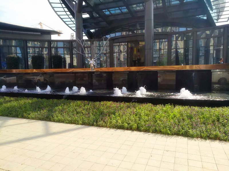 入戶處,緩緩流動的水池如娟娟細流、栩栩如生的雕塑如麋鹿漫步、青蔥翠綠的灌木如山間野花,閉上眼,仿佛踏入了原始森林,神秘而寧靜。