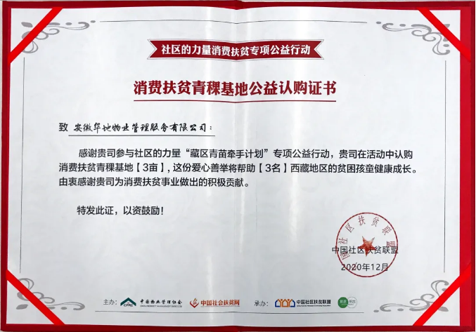 華地物業榮獲“中國社區扶貧聯盟理事單位”榮譽稱號
