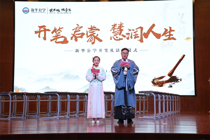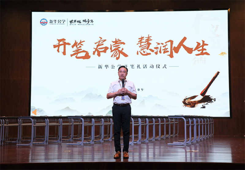 “開筆禮”是古代讀書人人生四大禮之一,被稱為人生“第一禮”,俗稱“破蒙”,對每個讀書人來說都有著重大的意義,是步入知識殿堂、走向成才的起點。9月28日下午,在新華公學報告廳舉行了莊嚴而隆重的“開筆禮”活動,一年級學生在家長與老師的見證下“開筆啟智”。新華公學總校長秦新春為此次開筆禮致辭,他期待同學們在中國傳統(tǒng)文化浸潤中,努力成為一名文明有禮、感恩孝順、積極進取的終身學習者。