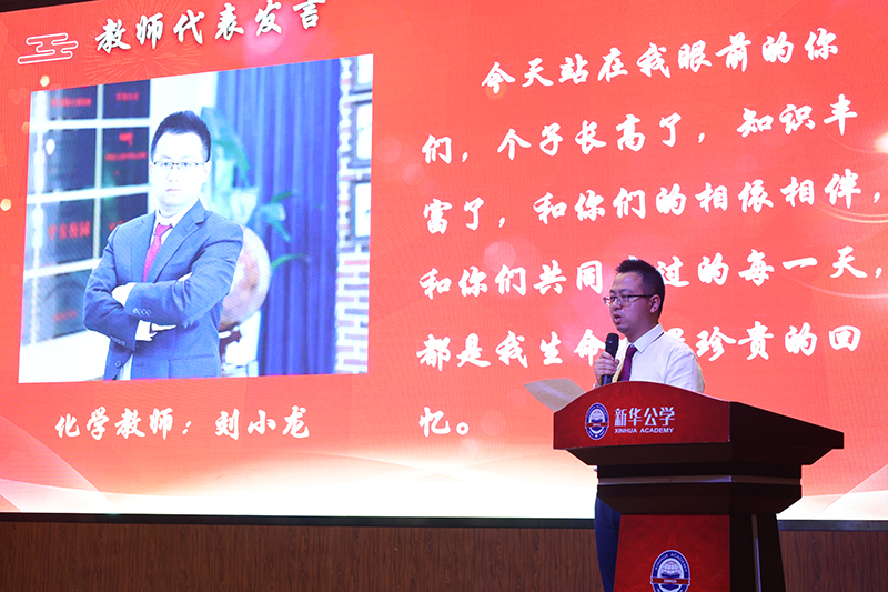 “感謝新華公學。我的母校您不但給了我們優美的校園環境,過硬的教學設施和優秀的師資隊伍,還教會了我們做人的基本準則。我們從三年前那一個個稚氣的孩童,成為了今天蓬勃向上的青年,新華公學的精神已經成為我們人生的一部分,是我們遠航的永恒動力