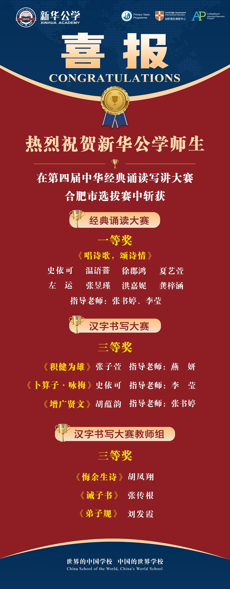 最后,讓我們祝賀以上獲獎(jiǎng)的老師和同學(xué)們,爭(zhēng)取在更大舞臺(tái)鑄就輝煌!
