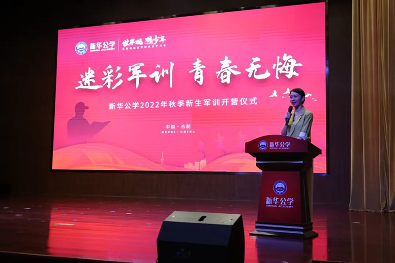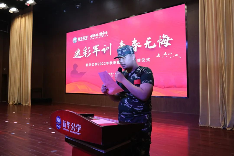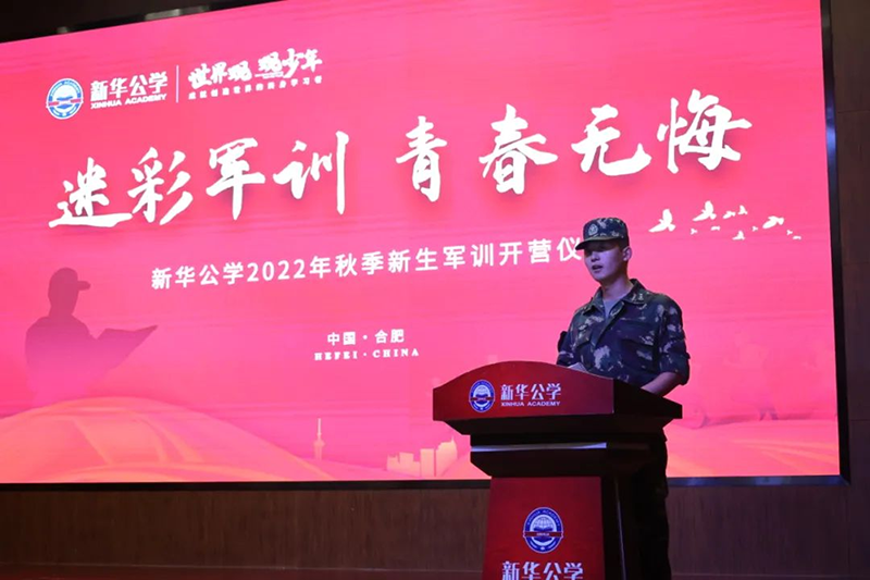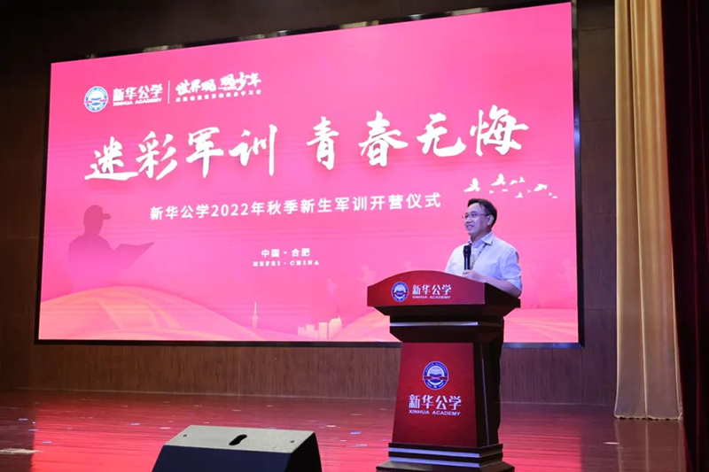 隨后新華公學(xué)總校長(zhǎng)秦新春給同學(xué)們帶來(lái)了殷切的期望和囑托。他表示,軍訓(xùn)是邁入人生新階段的第一課。因此,通過(guò)軍訓(xùn)的磨練后,他希望同學(xué)們能夠在生活上自立、學(xué)習(xí)上自主、健身上自覺(jué)、行為上自律、精神上自強(qiáng),樹(shù)立良好的學(xué)習(xí)和生活觀。