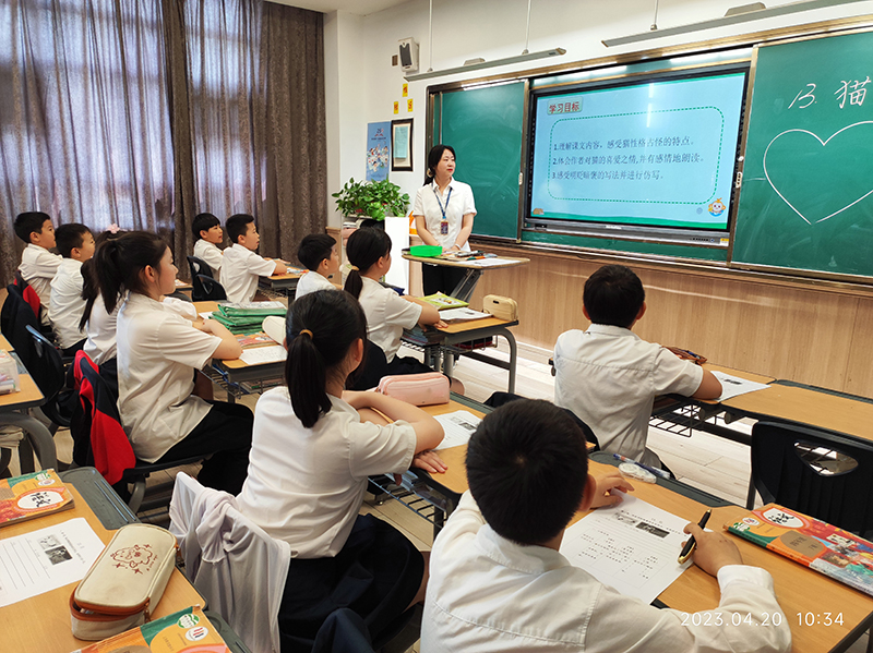 王瑜婕老師執(zhí)教了《貓》這一課。在師生的精誠合作中,小貓可愛溫順可愛,勇猛精進(jìn),貪玩任性的形象順利梳理出來,實(shí)現(xiàn)了學(xué)以致用的目的。