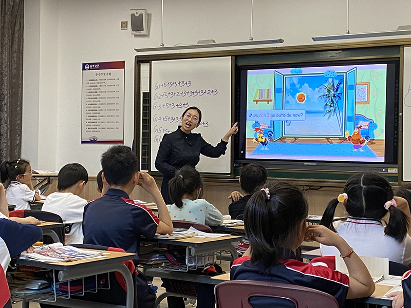 喬斌老師評(píng)課:在學(xué)習(xí)復(fù)習(xí)了所有天氣單詞后,戴老師呈現(xiàn)PEP課本中的句型Can I go outside?并增加了PU中的人物,進(jìn)行了有趣的融合,孩子們興致高昂,引導(dǎo)學(xué)生模仿人物的語氣來進(jìn)行配音對(duì)話,并在完成后及時(shí)進(jìn)行加分和獎(jiǎng)勵(lì),激發(fā)了學(xué)生的興致,發(fā)展學(xué)生的思維能力,也讓孩子們能夠在情境中學(xué)習(xí)單詞,加強(qiáng)語言的運(yùn)用。最后,戴老師對(duì)本節(jié)課的內(nèi)容進(jìn)行了鞏固和升華,拓展了一些活動(dòng)的短語,鼓勵(lì)學(xué)生們進(jìn)行不同天氣的活動(dòng)匹配,孩子們動(dòng)手動(dòng)腦,拓展了知識(shí)的廣度,也給學(xué)生們了進(jìn)行了當(dāng)堂檢測(cè),有效檢測(cè)鞏固了本節(jié)課的知識(shí)。