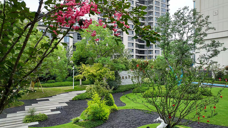 長(zhǎng)青喬木、應(yīng)時(shí)花草一起組成,春花、夏蔭、秋聲、冬藏的畫境開啟歸家漫時(shí)光,漫步其中,移步異景如畫卷層層鋪展。
