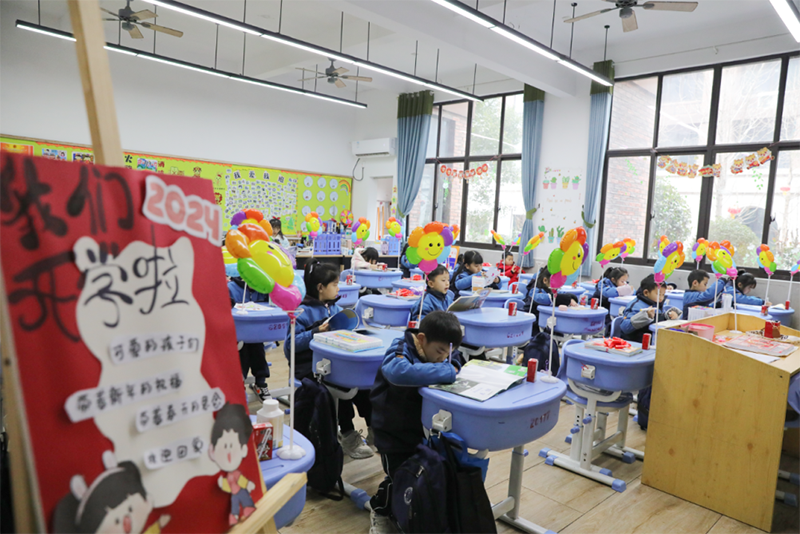 老師精心布置的教室,嶄新的課本與書桌,每一個細節,每一個角落,都在述說著一整個假期的思念。