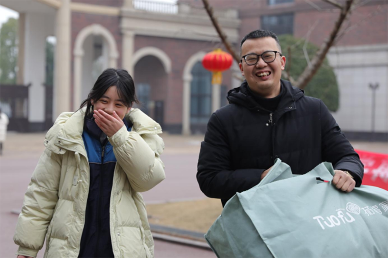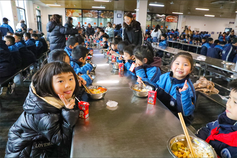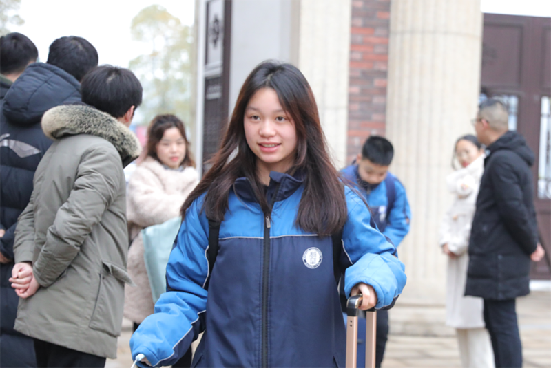 校長和老師們早早就等候孩子們歸來,送上新年的祝福與擁抱。伴隨著一聲聲充滿濃濃情意的“新年好”、“新年快樂”,同學們快樂地踏入校園。