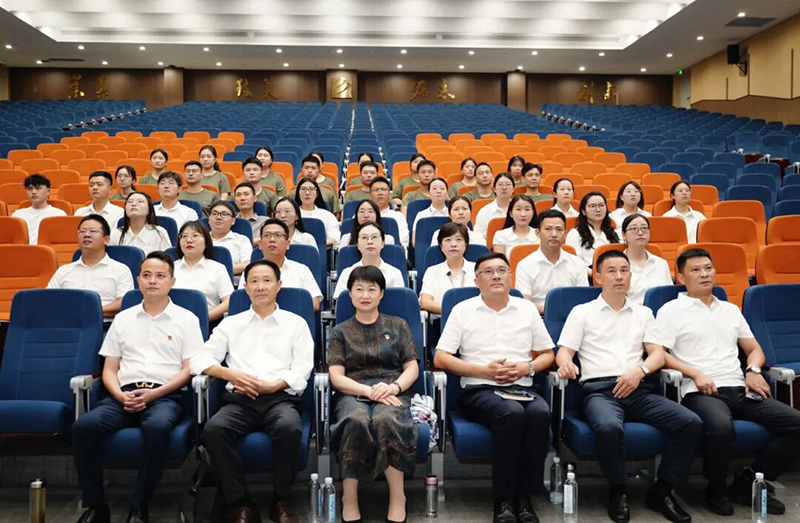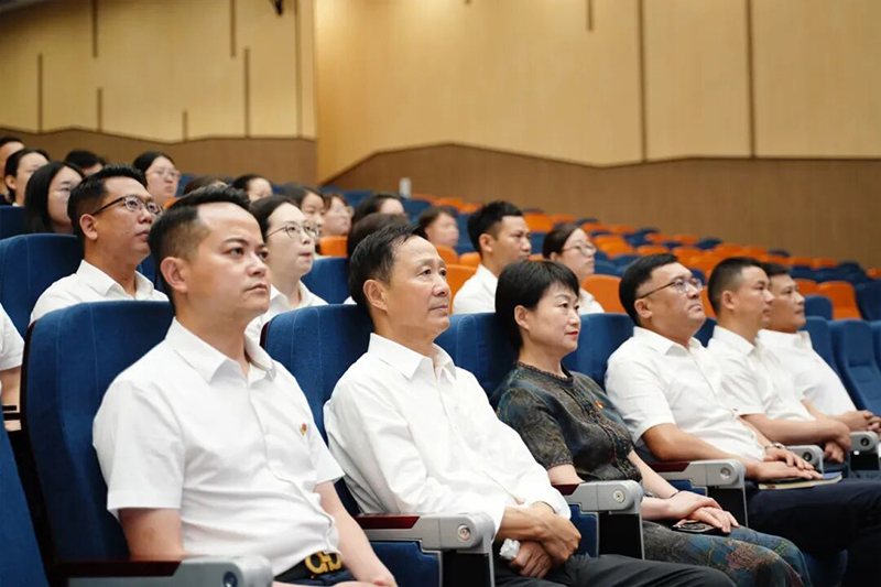上午8時40分,校領導及全體教職工入座報告廳,學生在各班教室安靜入座。上午9時整,學校全體教職工、學生通過大屏幕同步觀看直播盛況。當嘹亮的國歌響徹屏幕、鮮艷的五星紅旗冉冉升起時,全體師生的目光堅定地注視著屏幕中的國旗,濃濃的愛國情感在現場激蕩。